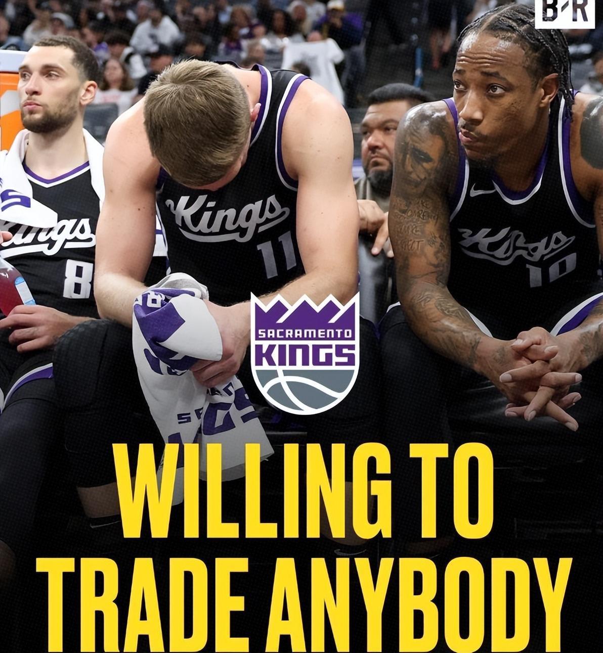 狂送5连败,从争冠热门跌至西部垫底,三巨头成累赘,你们离解散不远了!显然,仅仅不到一个赛季管理的耐心又被耗光了,国王开始考虑重建,他们已将 “几乎全员”摆上交易货架,对涉及小萨、拉文和德罗赞三巨头的交易谈判均持开放态度。