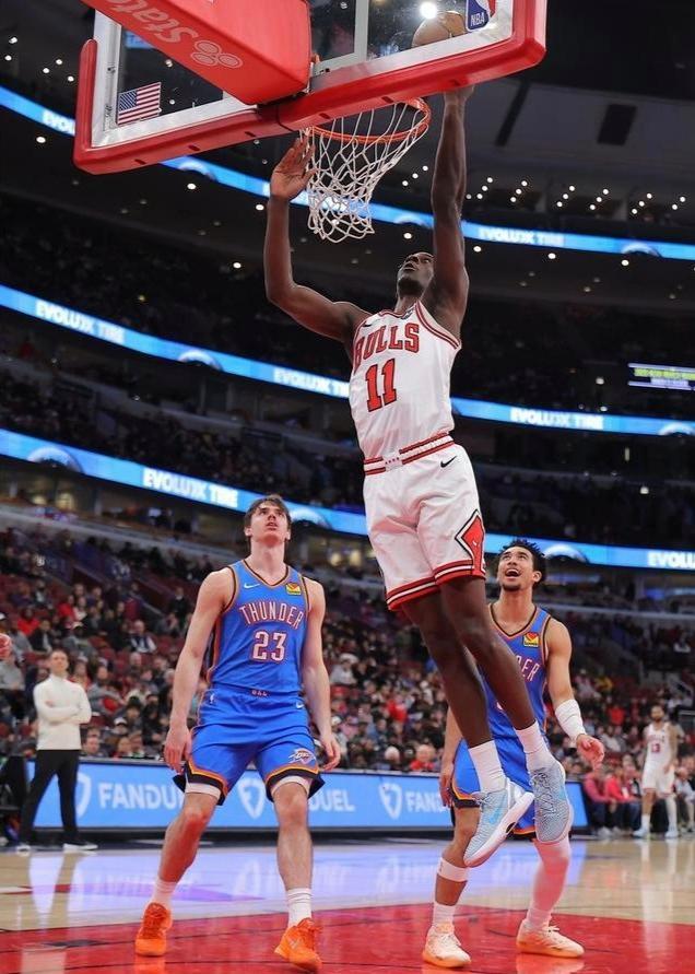 比赛伊始,双方并没有过多的试探,迅速进入了高强度的对抗节奏。公牛队的首发控卫塞克斯顿成为了主队进攻端的箭头人物,他利用自己的速度优势频频冲击雷霆的内线,整场比赛下来,他交出了20分1篮板2助攻的成绩单。塞克斯顿的得分爆发力让公牛队在进攻端保持着竞争力,但他单一的终结方式在雷霆严密的防守体系下,逐渐显得独木难支。与之相呼应的是公牛内线亚布塞莱的出色发挥,这位在内线苦苦支撑的大个子全场贡献了18分12篮板的两双数据,外加1抢断1盖帽。亚布塞莱在攻防两端的强硬表现,是公牛队能够在大部分时间内咬住比分的关键所在。